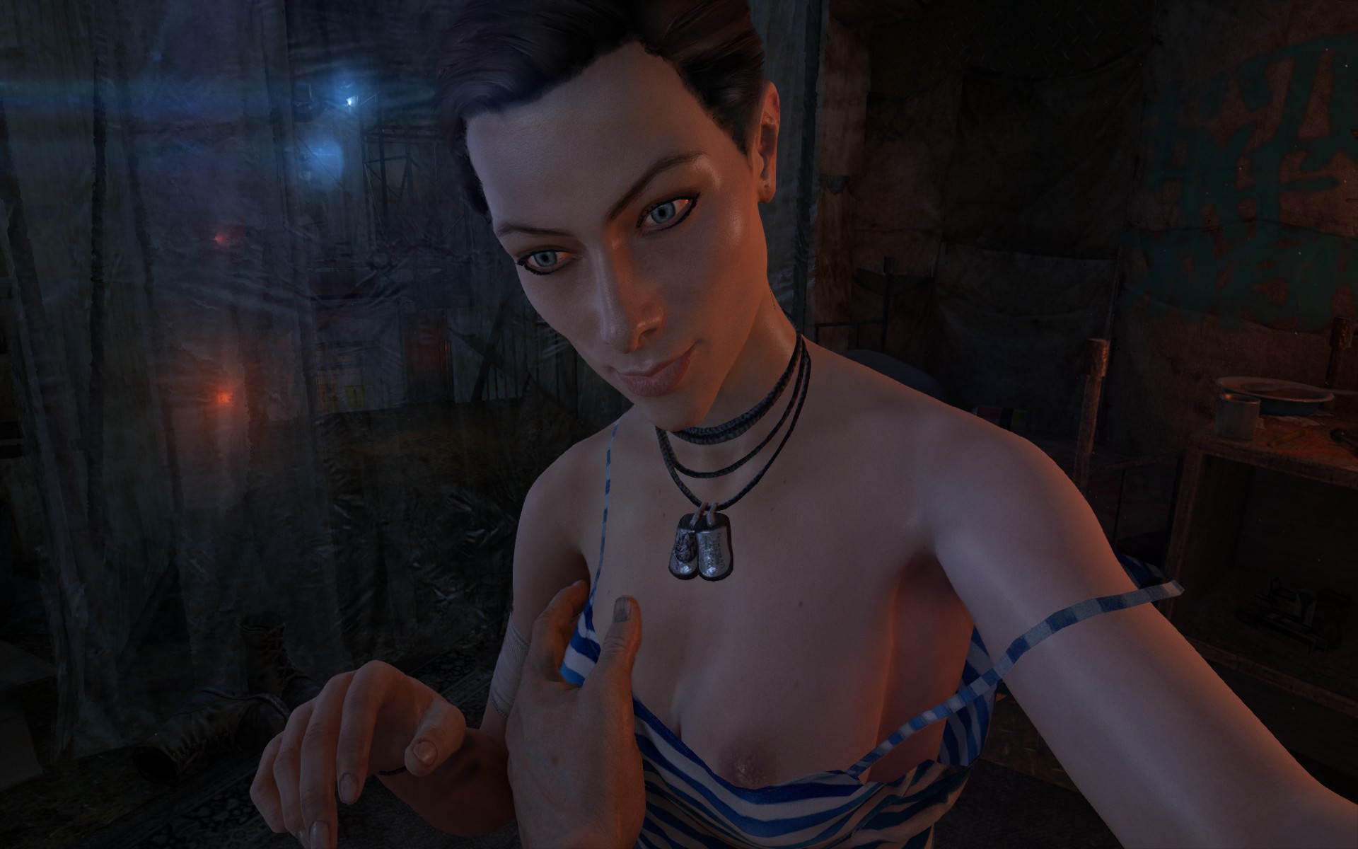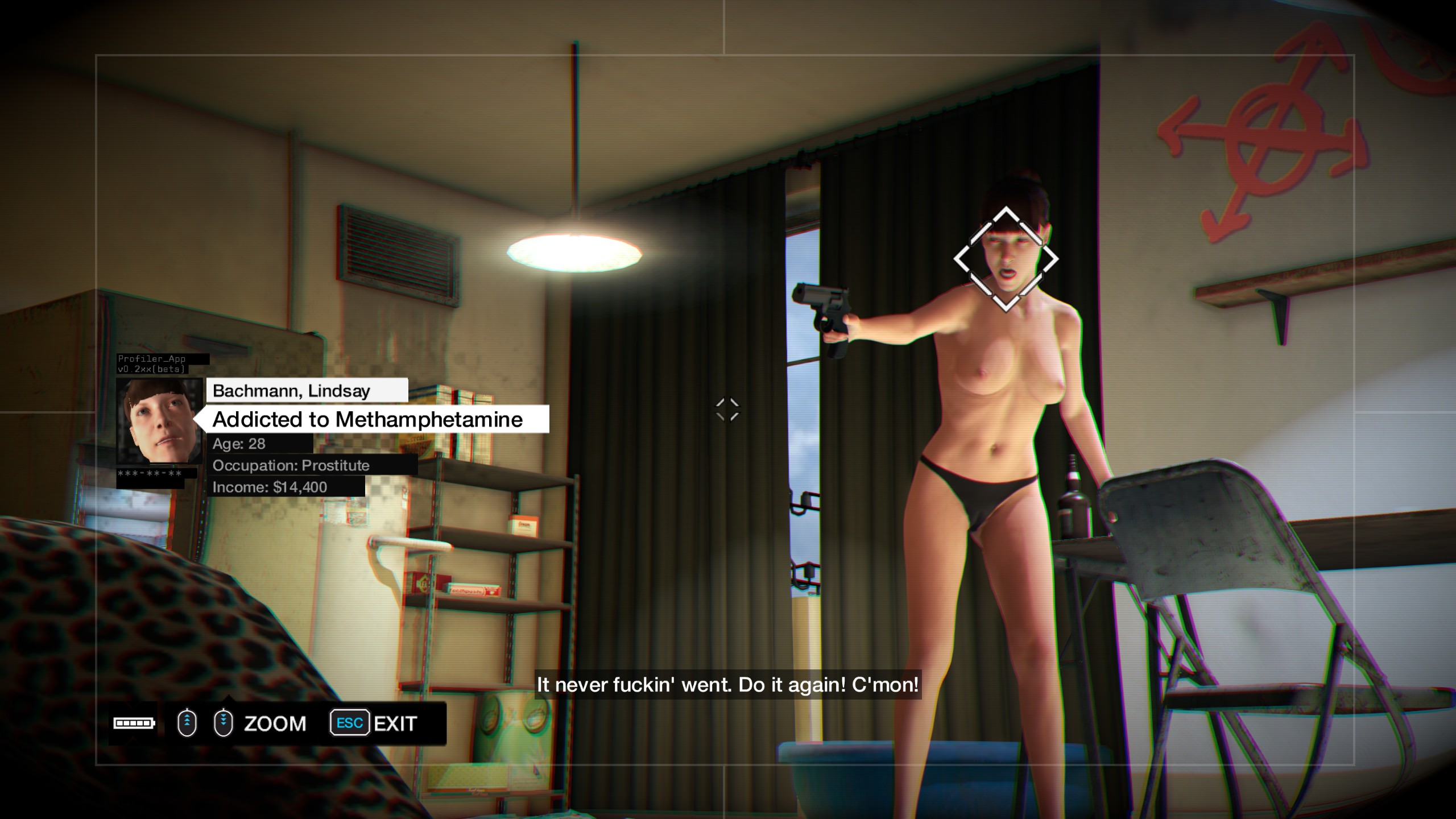 During the "Stare into the Abyss" mission Aiden encounters several semi naked girls at the Infinite 92 Fetish Club.