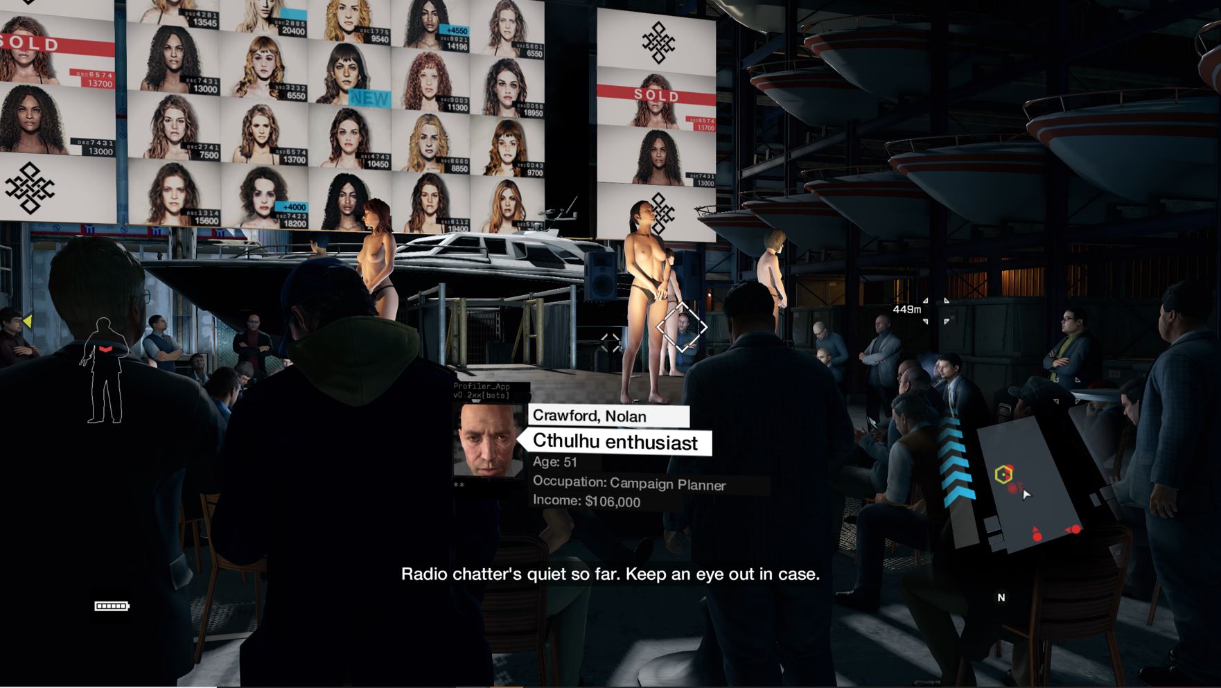 During the "Stare into the Abyss" mission Aiden encounters several semi naked girls at the Infinite 92 Fetish Club.
